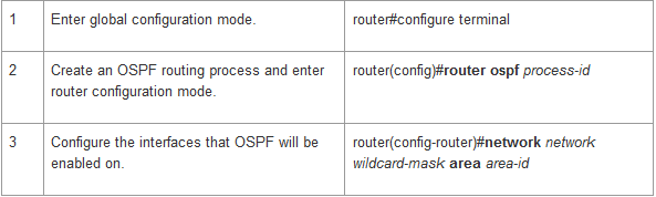 In my opinion, OSPF basic configuration is very simple for new graduated engineers. Firtsly, you need to enable ospf on a router by "router ospf PROCESS-ID" at global config mode. Next, you should decide interface which you will use ospf and what network will be advertised. You can execute "IP_ADDRESS WILCARD_MASK AREA_ID"command to do this required.